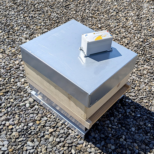 Grace à son antenne intégré, l’installation de la passerelle satellite est très simple, il suffit de poser le boiter sur le toit de la ruche et de l’orienter vers le sud. Le boiter est équipé d’un système de fixation magnétique pour le maintenir solidement en place.